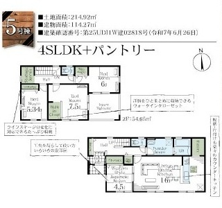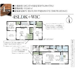 1階は広々とした約17.25帖のLDKに加え、テレワークや趣味スペースとしても使える5.25帖の洋室付き。2階には3つの洋室(6帖/6帖/8.5帖)があり、主寝室には大型ウォークインクローゼットを完備しています。