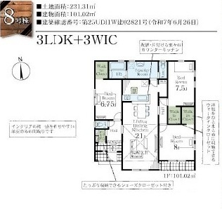 - 陽当り良好 / バリアフリー / 建設住宅性能評価書付 / 仲介手数料無料 / 室内洗濯機置場 / フローリング / プロパンガス / 公営水道 / 浄化槽排水 / 24時間換気システム / 電気有 / インナーバルコニー / 耐震構造 / ガスコンロ / コンロ2口以上 / システムキッチン / カウンターキッチン / コンロ3口 / バス・トイレ別 / 追焚機能浴室 / 浴室乾燥機 / 温水洗浄便座 / 洗髪洗面化粧台 / トイレ2ヶ所 / 浴室1坪以上 / 床下収納 / ウォークインクロゼット / ウォークインシューズクロゼット / 収納豊富 / 複層ガラス / ディンプルキー